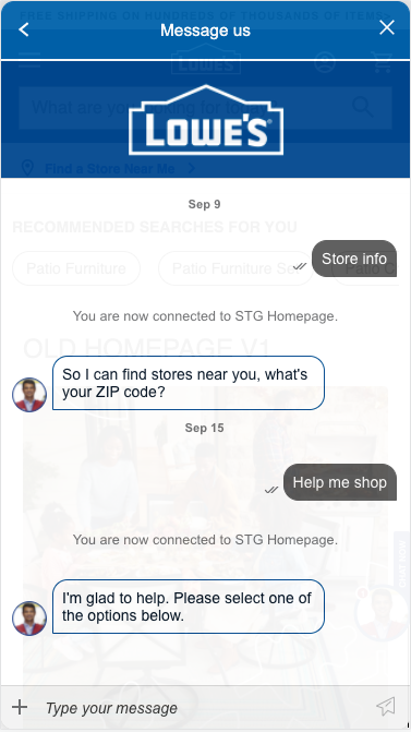Lowe’s Chat experience was previously powered by a third-party vendor, LivePerson, to support both live agent chat and chatbot interactions. While functionally reliable, the platform imposed significant limitations on the front-end experience, resulting in inconsistent UI patterns, limited customization, and fragmented experiences across platforms.